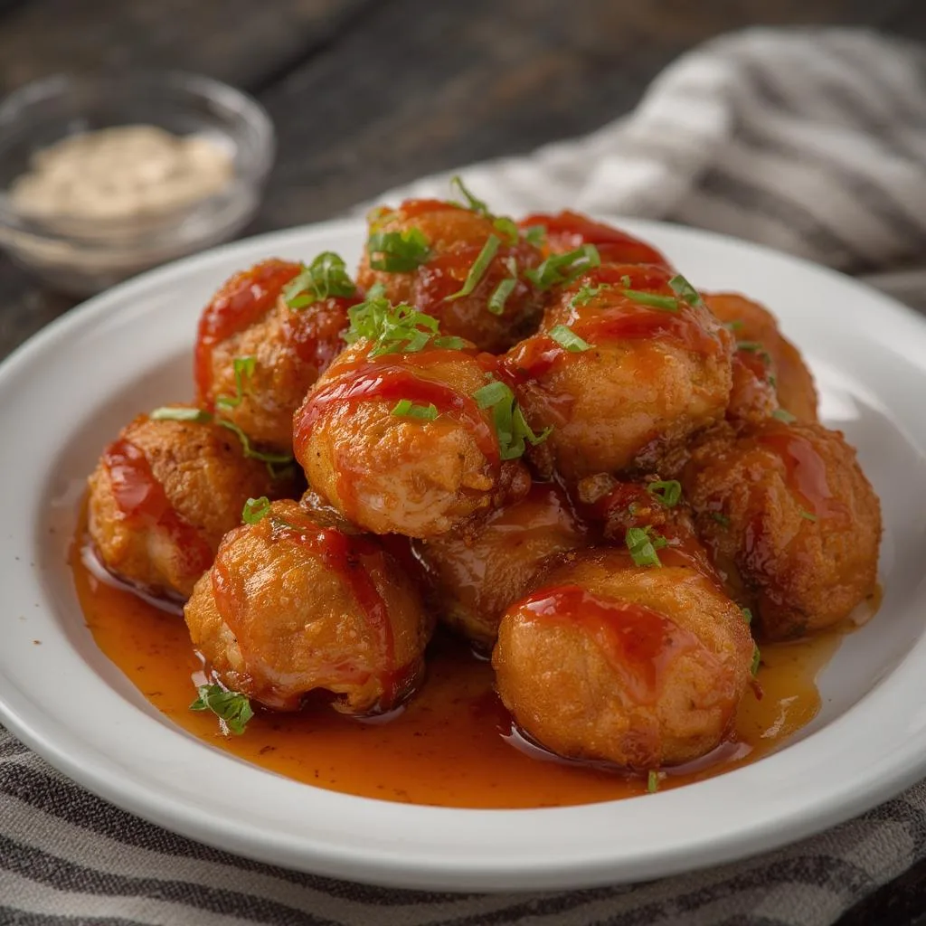 Arrange the glazed bites on a serving platter, drizzle with remaining sauce, and sprinkle with sesame seeds and sliced green onions. These Superbowl Party Food Ideas are ready to impress your guests!