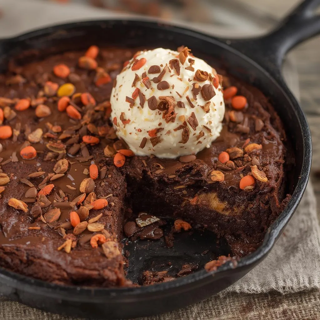 Reeses Skillet Brownie Dessert is the ultimate indulgence for chocolate and peanut butter lovers! This mouthwatering treat combines the fudgy goodness of brownies with the iconic flavor of Reese’s cups, all baked to perfection in a cast iron skillet. The result is a warm, gooey dessert with crispy edges and a soft center that’s guaranteed to satisfy your sweet tooth. Whether you’re hosting a dinner party, celebrating a special occasion, or simply craving something decadent, this Reese Pieces Cookies inspired creation will become your new go-to dessert.